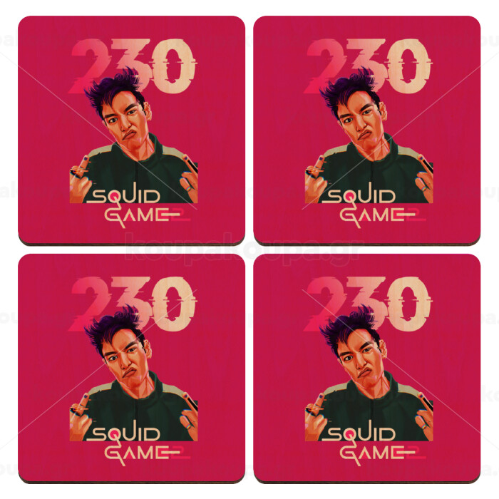 Squid game 2, Thanos 230, ΣΕΤ x4 Σουβέρ ξύλινα τετράγωνα plywood (9cm)