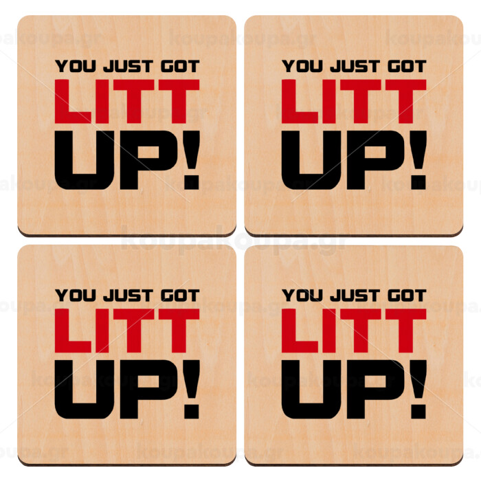 Suits You Just Got Litt Up! , ΣΕΤ x4 Σουβέρ ξύλινα τετράγωνα plywood (9cm)