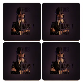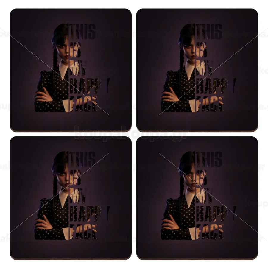 Wednesday, This is my happy face, ΣΕΤ x4 Σουβέρ ξύλινα τετράγωνα plywood (9cm)