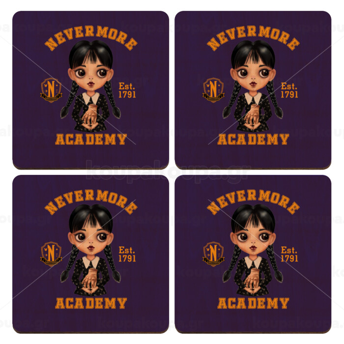 Wednesday Adams, nevermore, ΣΕΤ x4 Σουβέρ ξύλινα τετράγωνα plywood (9cm)