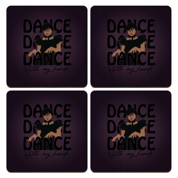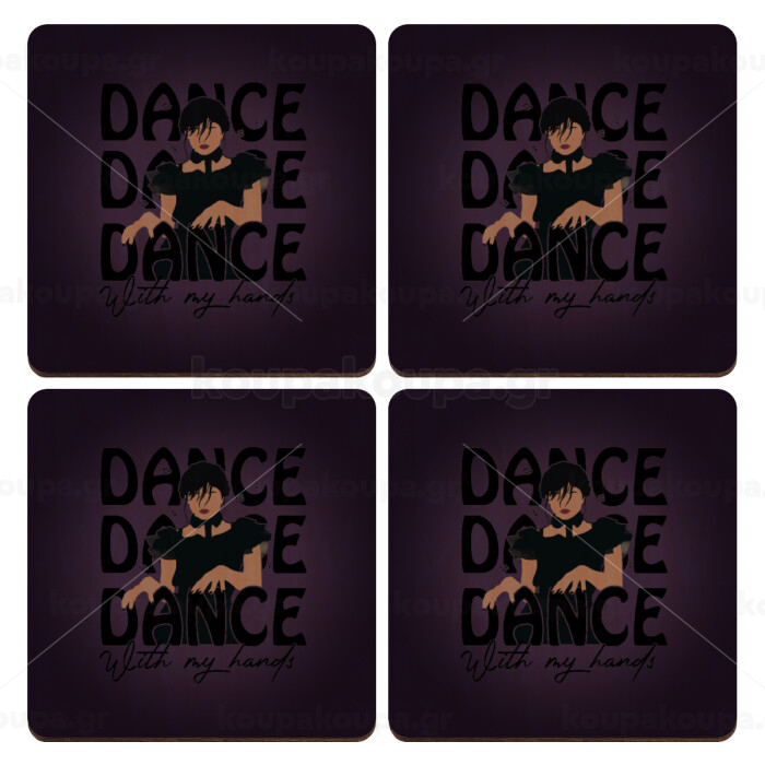 Wednesday dance dance dance, ΣΕΤ x4 Σουβέρ ξύλινα τετράγωνα plywood (9cm)
