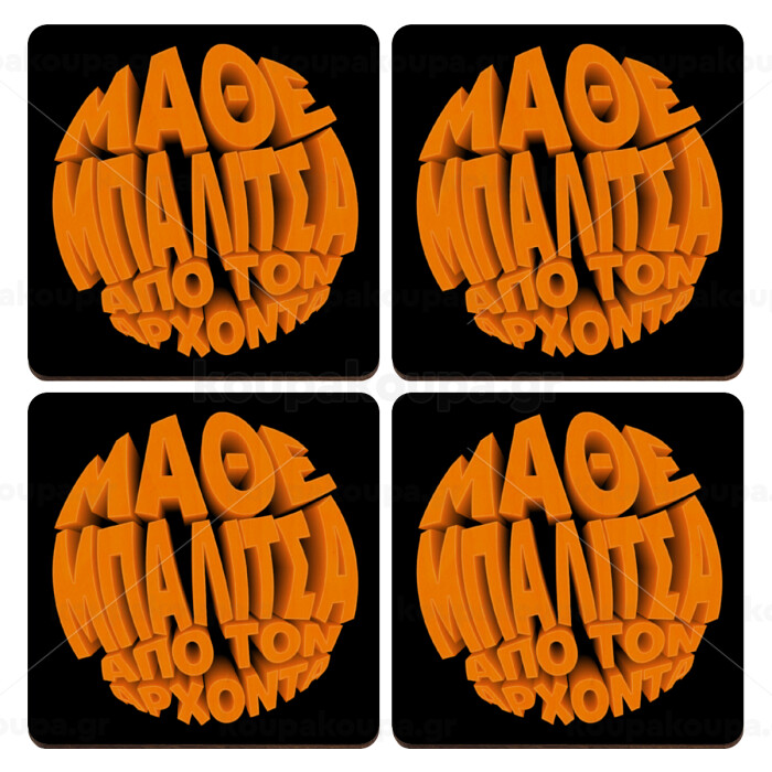 Μάθε μπαλίτσα από τον Άρχοντα, ΣΕΤ x4 Σουβέρ ξύλινα τετράγωνα plywood (9cm)