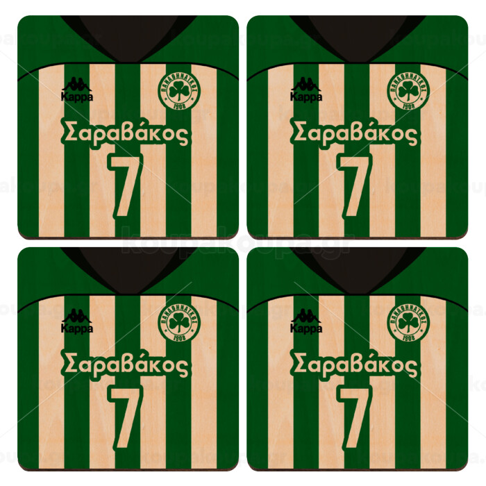 Παναθηναϊκός εμφάνιση, ΣΕΤ x4 Σουβέρ ξύλινα τετράγωνα plywood (9cm)