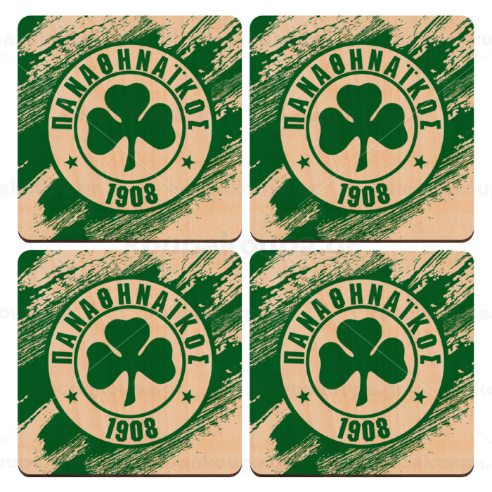 Π.Α.Ο., ΣΕΤ x4 Σουβέρ ξύλινα τετράγωνα plywood (9cm)