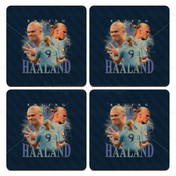 Erling Haaland, ΣΕΤ x4 Σουβέρ ξύλινα τετράγωνα plywood (9cm)