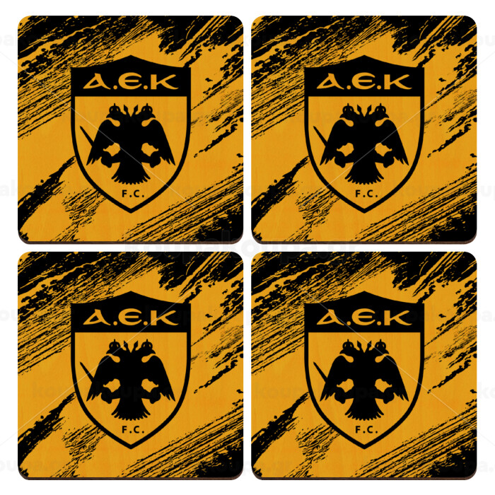 FC Α.Ε.Κ., ΣΕΤ x4 Σουβέρ ξύλινα τετράγωνα plywood (9cm)
