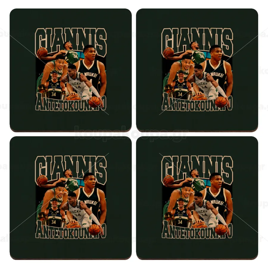 Giannis Antetokounmpo, ΣΕΤ x4 Σουβέρ ξύλινα τετράγωνα plywood (9cm)
