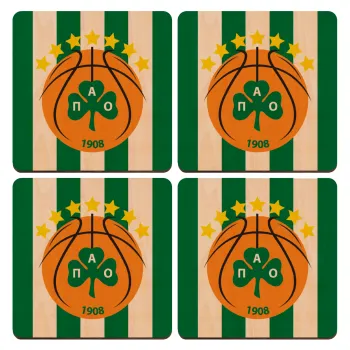 ΠΑΟ BC, ΣΕΤ x4 Σουβέρ ξύλινα τετράγωνα plywood (9cm)