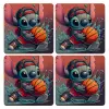 Stitch Basketball, ΣΕΤ x4 Σουβέρ ξύλινα τετράγωνα plywood (9cm)