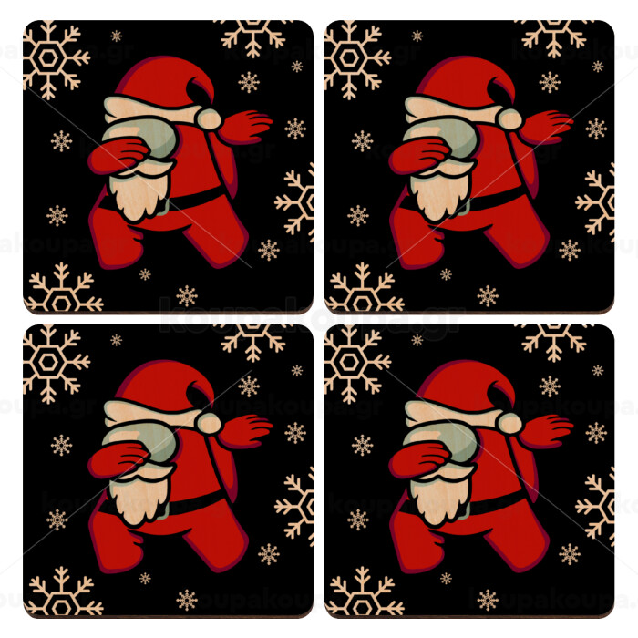 Among US Xmas, ΣΕΤ x4 Σουβέρ ξύλινα τετράγωνα plywood (9cm)
