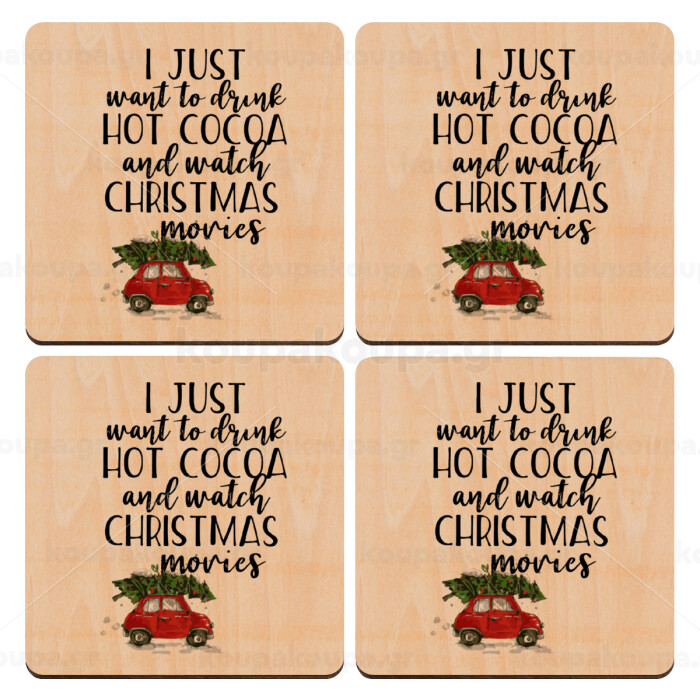 I just want to drink hot cocoa and watch christmas movies mini cooper, ΣΕΤ x4 Σουβέρ ξύλινα τετράγωνα plywood (9cm)