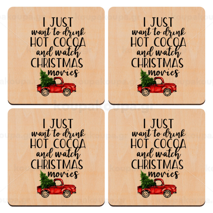 I just want to drink hot cocoa and watch christmas movies pickup car, ΣΕΤ x4 Σουβέρ ξύλινα τετράγωνα plywood (9cm)