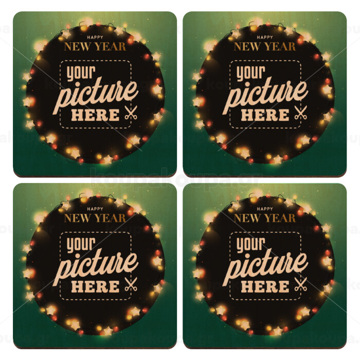 PHOTO xmas lights, ΣΕΤ x4 Σουβέρ ξύλινα τετράγωνα plywood (9cm)