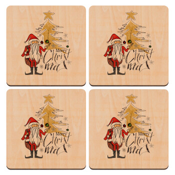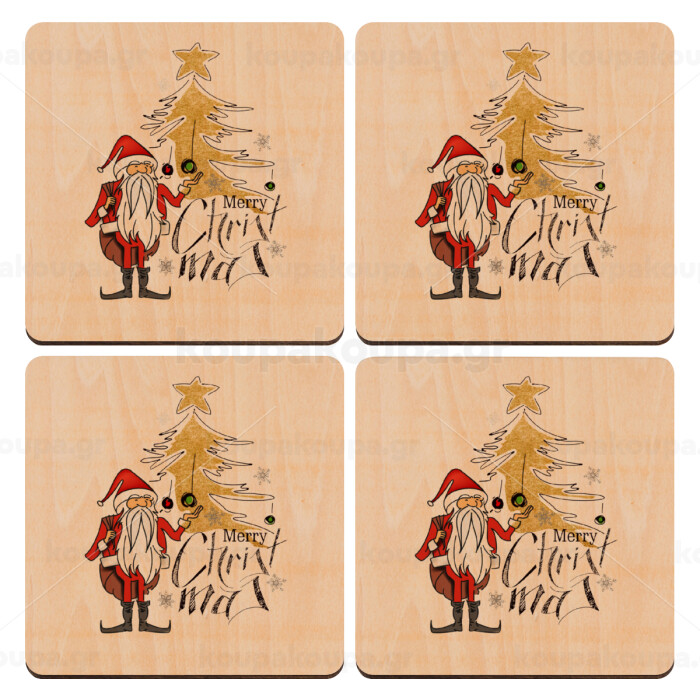 Santa Claus gold, ΣΕΤ x4 Σουβέρ ξύλινα τετράγωνα plywood (9cm)