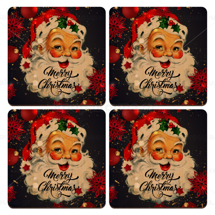Santa vintage, ΣΕΤ x4 Σουβέρ ξύλινα τετράγωνα plywood (9cm)