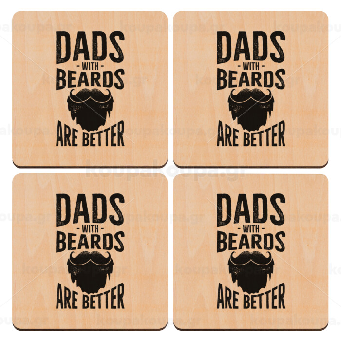 Dad's with beards are better, ΣΕΤ x4 Σουβέρ ξύλινα τετράγωνα plywood (9cm)