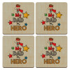 My Dad, my Hero!!!, ΣΕΤ x4 Σουβέρ ξύλινα τετράγωνα plywood (9cm)