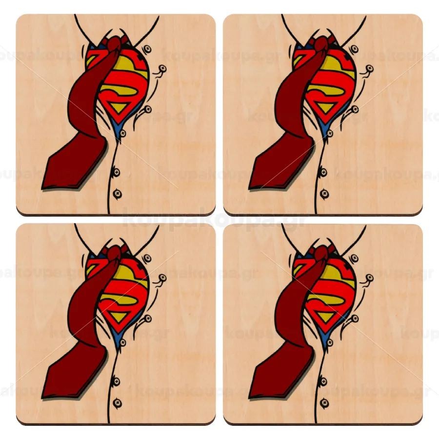 SuperDad, ΣΕΤ x4 Σουβέρ ξύλινα τετράγωνα plywood (9cm)