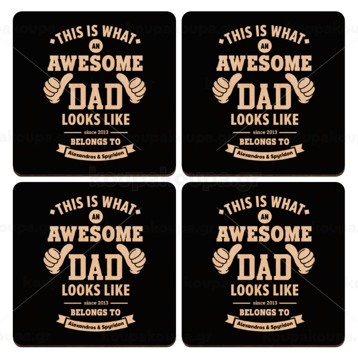 This is what an Awesome DAD looks like, ΣΕΤ x4 Σουβέρ ξύλινα τετράγωνα plywood (9cm)