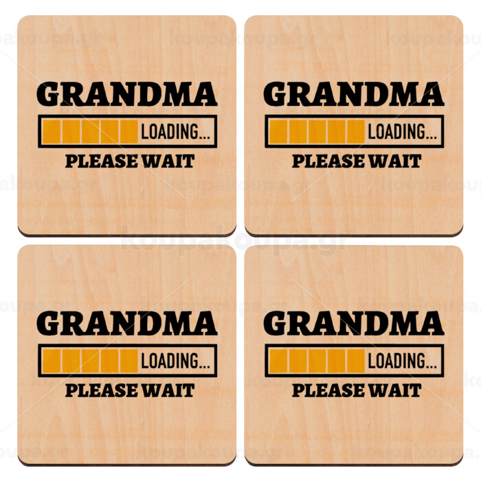Grandma Loading, ΣΕΤ x4 Σουβέρ ξύλινα τετράγωνα plywood (9cm)