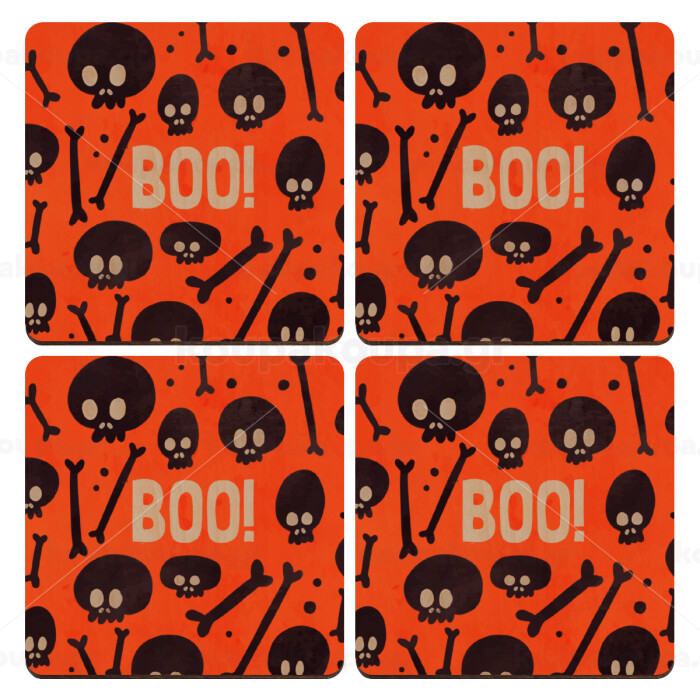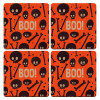 Halloween boo, ΣΕΤ x4 Σουβέρ ξύλινα τετράγωνα plywood (9cm)