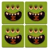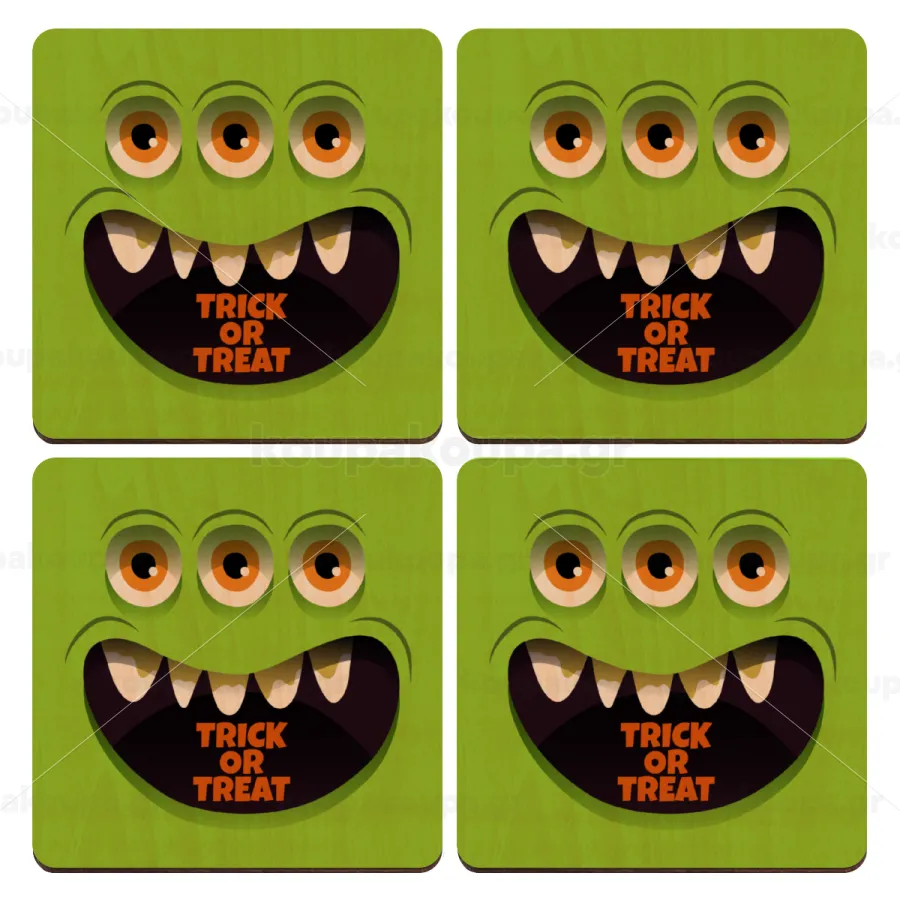 Halloween trick or treat 3 eyes monster, ΣΕΤ x4 Σουβέρ ξύλινα τετράγωνα plywood (9cm)