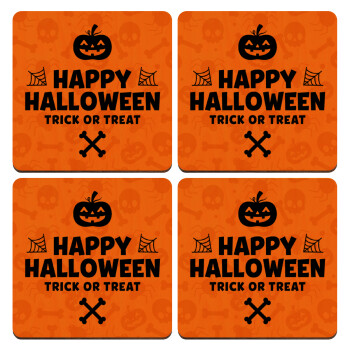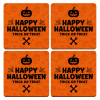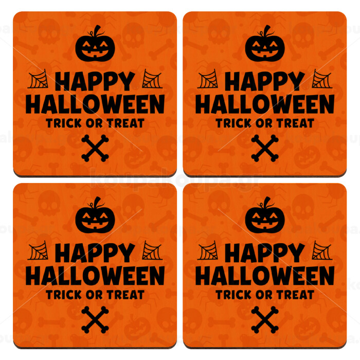 Happy Halloween pumpkin, ΣΕΤ x4 Σουβέρ ξύλινα τετράγωνα plywood (9cm)