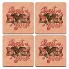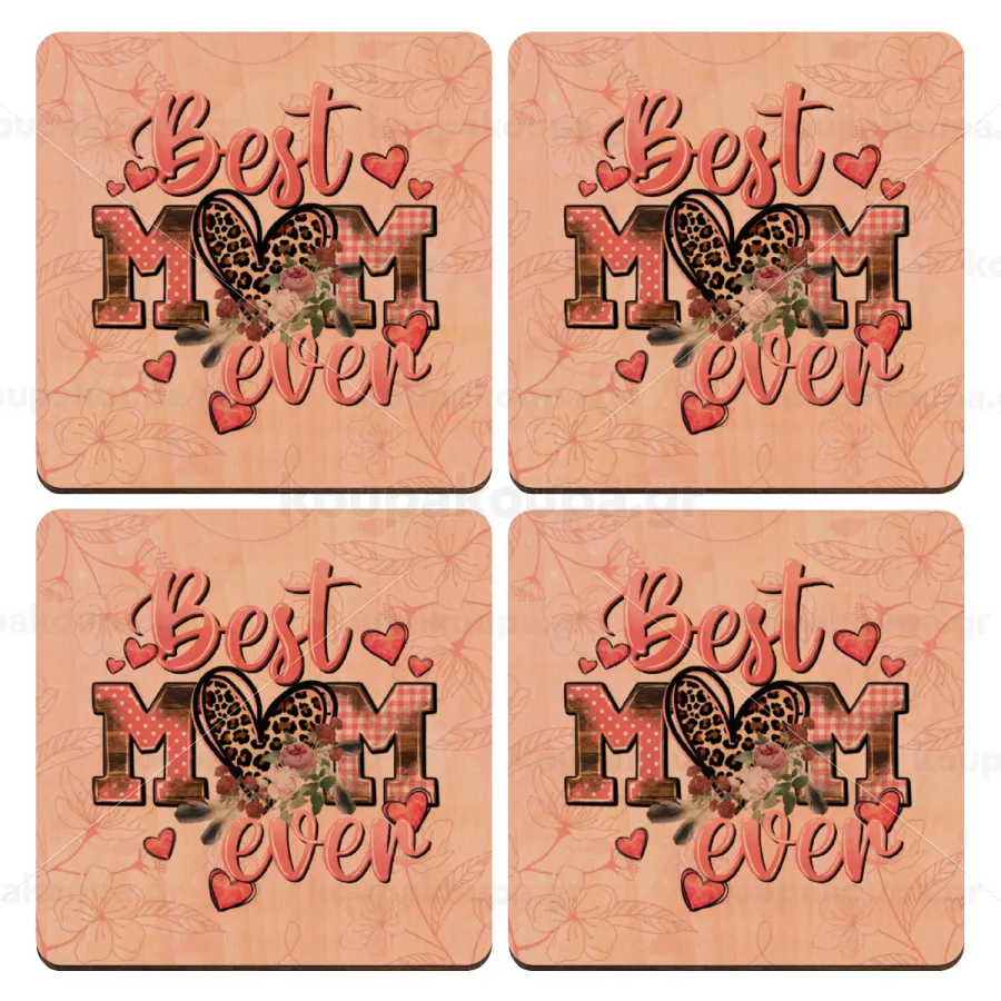 Best mom ever Mother's Day, ΣΕΤ x4 Σουβέρ ξύλινα τετράγωνα plywood (9cm)