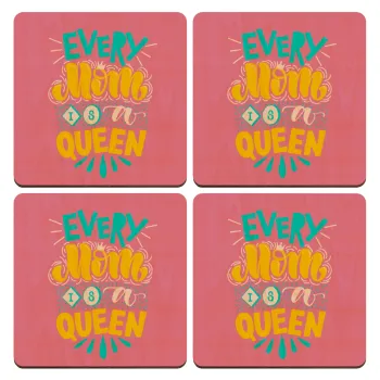Every mom is a Queen, ΣΕΤ x4 Σουβέρ ξύλινα τετράγωνα plywood (9cm)
