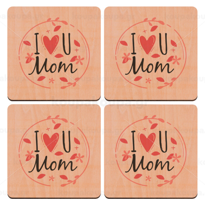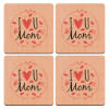 I Love you Mom pink, ΣΕΤ x4 Σουβέρ ξύλινα τετράγωνα plywood (9cm)