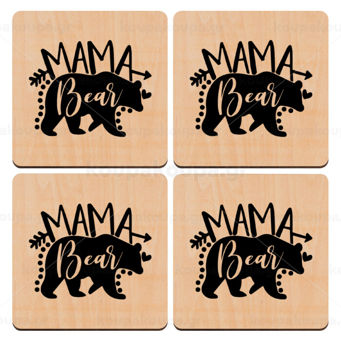 Mama Bear, ΣΕΤ x4 Σουβέρ ξύλινα τετράγωνα plywood (9cm)