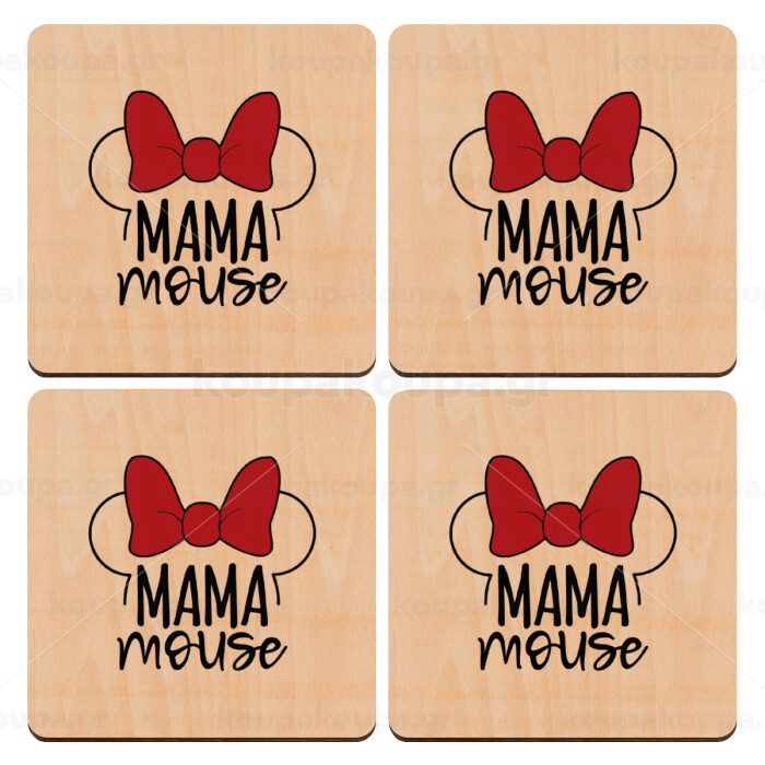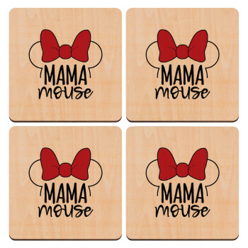 MAMA mouse, ΣΕΤ x4 Σουβέρ ξύλινα τετράγωνα plywood (9cm)