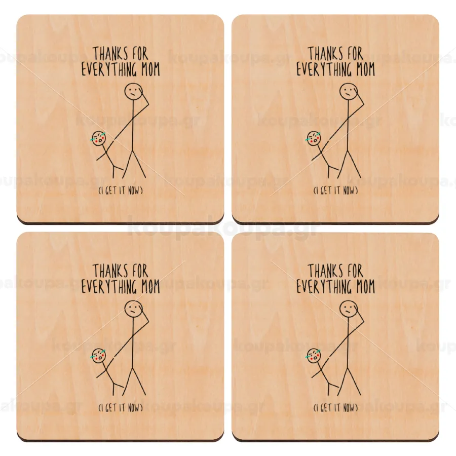 Thanks for everything mom, ΣΕΤ x4 Σουβέρ ξύλινα τετράγωνα plywood (9cm)