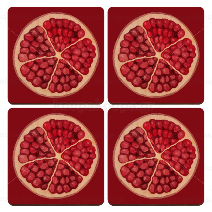Ρόδι, ΣΕΤ x4 Σουβέρ ξύλινα τετράγωνα plywood (9cm)