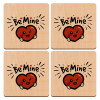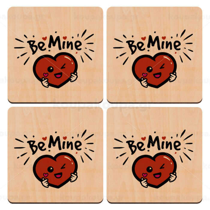 Be mine!, ΣΕΤ x4 Σουβέρ ξύλινα τετράγωνα plywood (9cm)