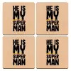 He is my superman, ΣΕΤ x4 Σουβέρ ξύλινα τετράγωνα plywood (9cm)
