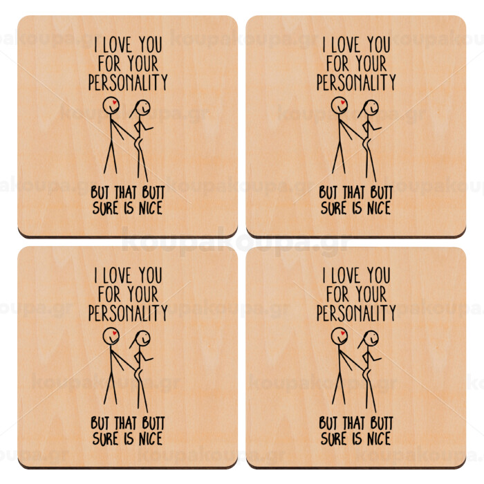 I Love you for your personality, ΣΕΤ x4 Σουβέρ ξύλινα τετράγωνα plywood (9cm)