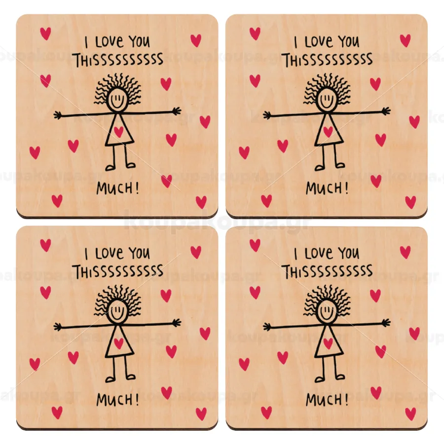 I Love you thissss much..., ΣΕΤ x4 Σουβέρ ξύλινα τετράγωνα plywood (9cm)
