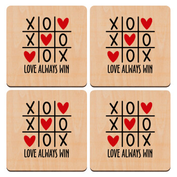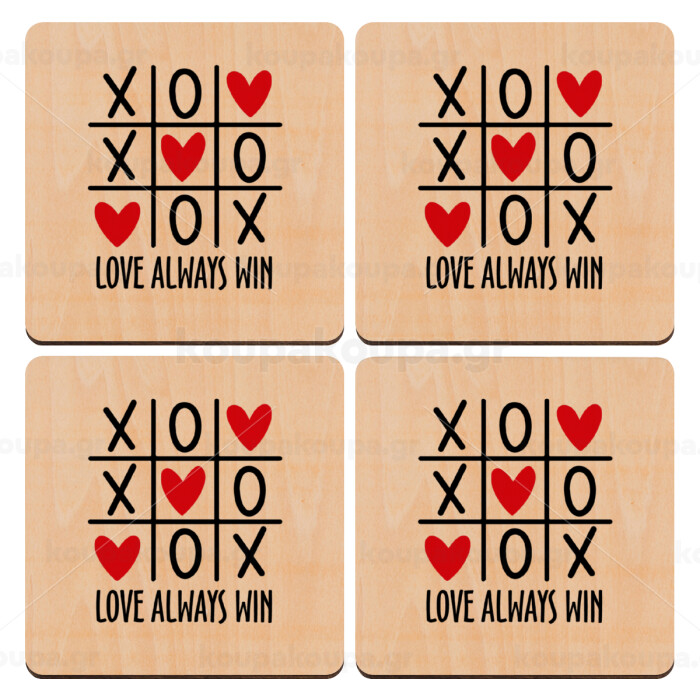 Love always win, ΣΕΤ x4 Σουβέρ ξύλινα τετράγωνα plywood (9cm)
