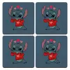 Stitch heart, ΣΕΤ x4 Σουβέρ ξύλινα τετράγωνα plywood (9cm)