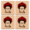 Frida, ΣΕΤ x4 Σουβέρ ξύλινα τετράγωνα plywood (9cm)
