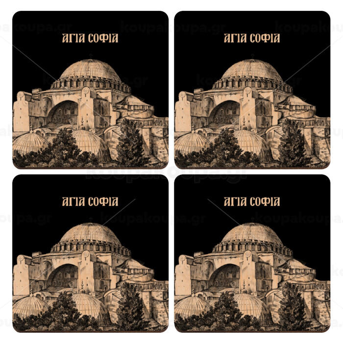Αγία Σοφιά, ΣΕΤ x4 Σουβέρ ξύλινα τετράγωνα plywood (9cm)