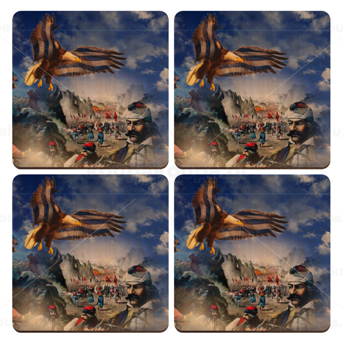 25η Μαρτίου 1821 Εθνική Επέτειος, ΣΕΤ x4 Σουβέρ ξύλινα τετράγωνα plywood (9cm)