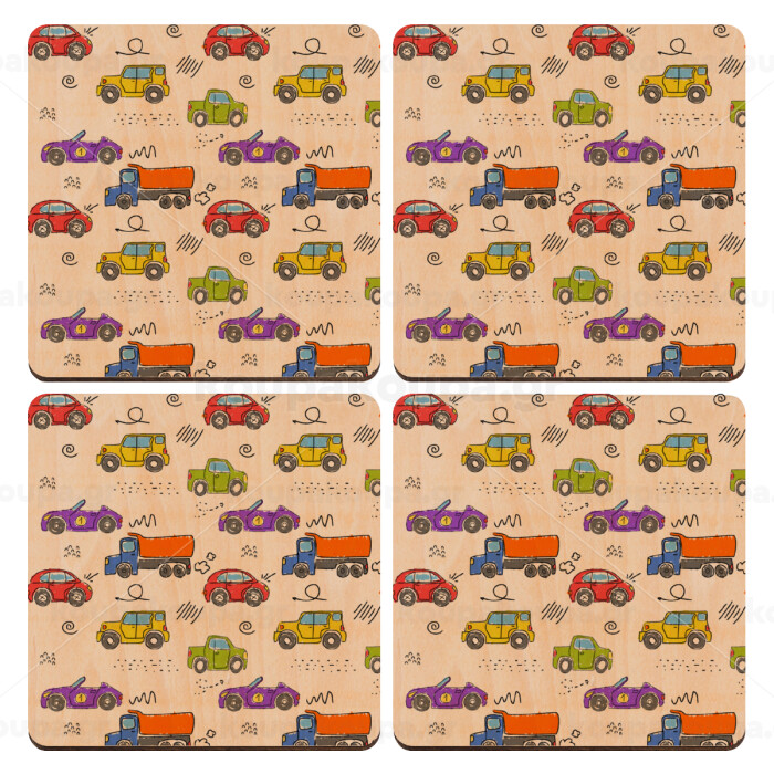 Αμαξάκια, ΣΕΤ x4 Σουβέρ ξύλινα τετράγωνα plywood (9cm)