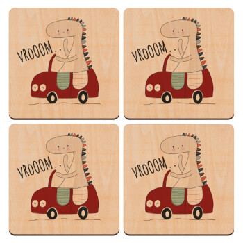 Βρουμ βρουμ, ΣΕΤ x4 Σουβέρ ξύλινα τετράγωνα plywood (9cm)