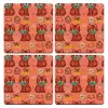 Cats and Fishes, ΣΕΤ x4 Σουβέρ ξύλινα τετράγωνα plywood (9cm)