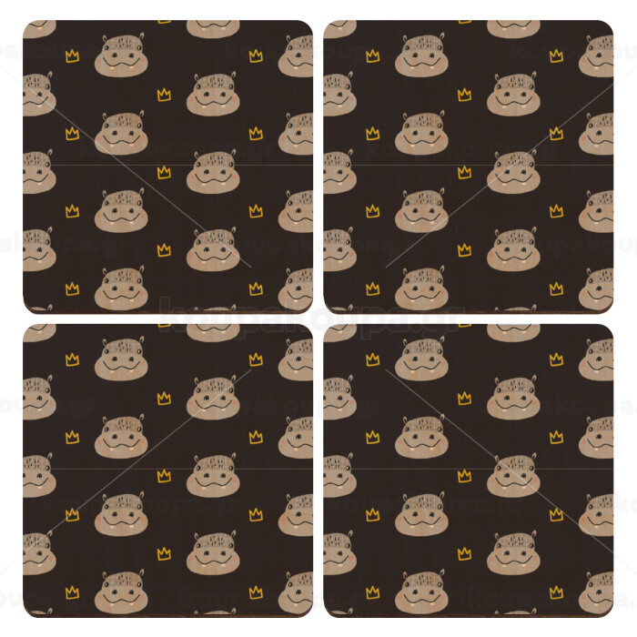 Hippo, ΣΕΤ x4 Σουβέρ ξύλινα τετράγωνα plywood (9cm)