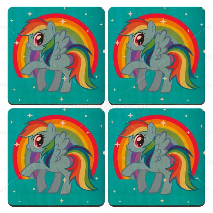 My Little Pony, ΣΕΤ x4 Σουβέρ ξύλινα τετράγωνα plywood (9cm)