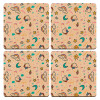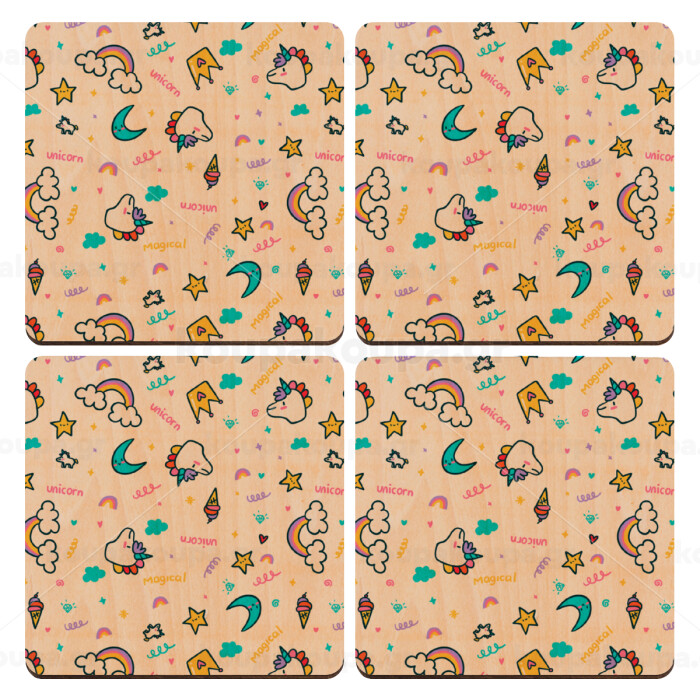 Unicorn pattern white, ΣΕΤ x4 Σουβέρ ξύλινα τετράγωνα plywood (9cm)