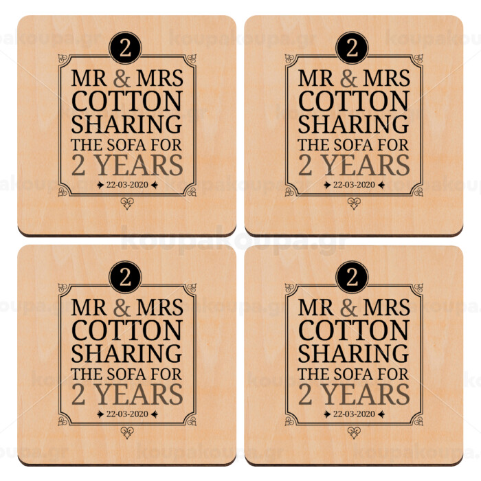 Mr & Mrs Sharing the sofa, ΣΕΤ x4 Σουβέρ ξύλινα τετράγωνα plywood (9cm)